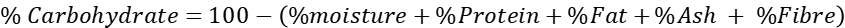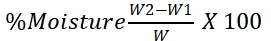 The moisture content was determined by the hot air oven method as described by AOAC [24]. An empty crucible was weighed, and 2 g of the sample was transferred into the crucible. This was taken into the hot air oven and dried for 24 h at 100 °C. The loss in weight was regarded as the moisture content and expressed as: