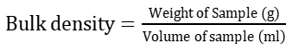 This was determined according to the method of Onwuka [22]. A ten millilitres capacity graduated cylinder was weighed on a digital balance. The cylinder was gently filled with the sample. The bottom of the cylinder was tapped on the laboratory bench several times until no further diminution of the sample level occurred after filling to the 10 ml mark.