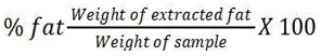 The Soxhlet extraction method described by AOAC [24] was used in determining the crude fat content of the samples. Two grams of the sample were weighed, and the weight of the flat-bottom flask was taken with the extractor. Mounted on it, the thimble was held halfway into the extractor, and the weight of the sample was applied. Extraction was carried out using a boiling point of 60 oC. The thimble was plugged with cotton wool. At completion of the extraction, which lasted for 8 hours, the solvent was removed by evaporation on a water bath, and the remaining part in the flask was dried at 80 oC for 30 minutes in the air oven to dry the fat, then cooled in a desiccator. The flask was reweighed and the percentage fat calculated thus: